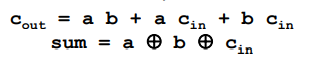 1bit Add연산은 값이 Cout(올림수) sum (현재 자리에 올 수)로 2가지가 나오는데 다음 두 수는 위와 같이 표현할 수 있다.
