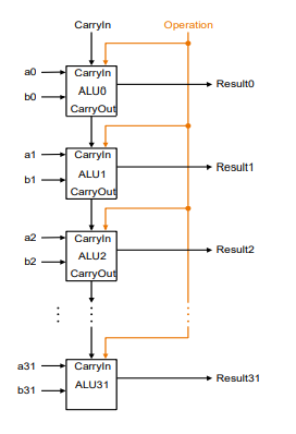 32bit 연산을 위해 32개의 ALU를 붙이면, 위와 같은 32bit 연산을 할 수 있게 된다.