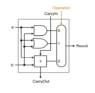 우리가 ALU 하드웨어를 만들기 위해선 위의 총 4가지의 논리 회로가 필요하다.