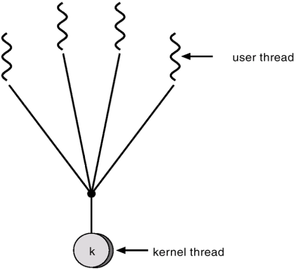 많은 사용자 스레드 - 하나의 커널 스레드로 사상(mapping)