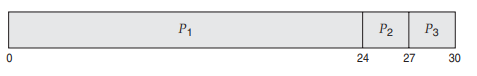 평균 대기 시간은 (0+24+27)/3 = 17 이 되어, 비교적 짧은 시간이 걸리는 작업인 2와 3이 긴시간이 걸리는 1을 오랫동안 기다리게 되어 효율적이지 못하다.