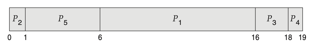 우선 순위순대로 P2 P5 P1 P3 P4가 실행된다.