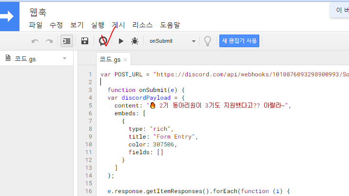 구글폼 Discord 웹훅 연동