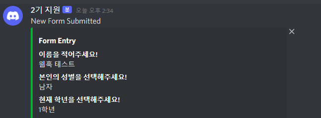 그래서 구글폼과 디스코드를 웹훅을 통해 연결해보고 해당 과정을 아카이빙 해놓기로 한다.