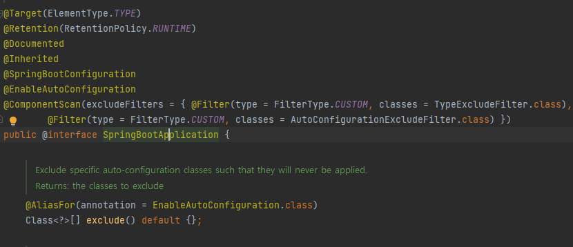기본적으로 맨처음 어플리케이션 실행 클래스에 있는 @SpringBootApplication 어노테이션도 @ComponentScan 기능을 갖고 있다.