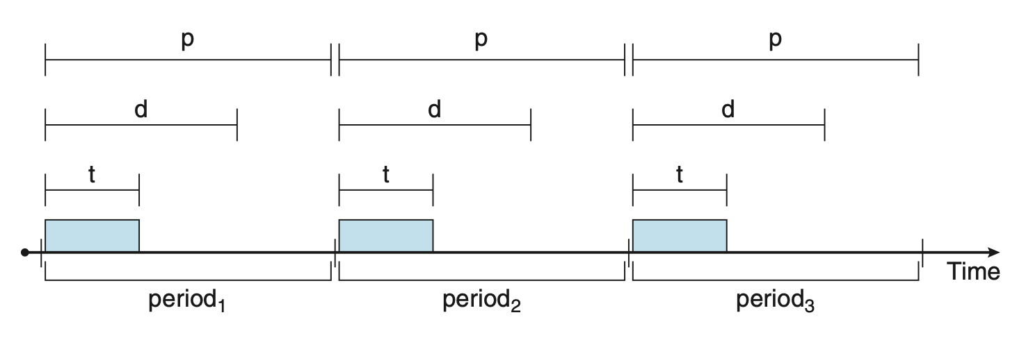 3. 고정된 수행 시간 = 최대 수행 시간(Execution time = CPU Burst Time) t (0 ≤ t ≤ d ≤ p)