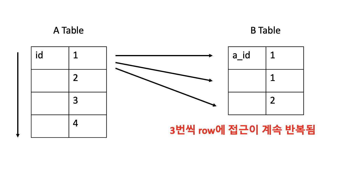 잘 생각해보면 밖의 테이블의 각 row들은 단 한번씩만 접근하게 되나 안의 테이블의 row는 밖의 테이블의 row 수만큼 접근하게 된다.