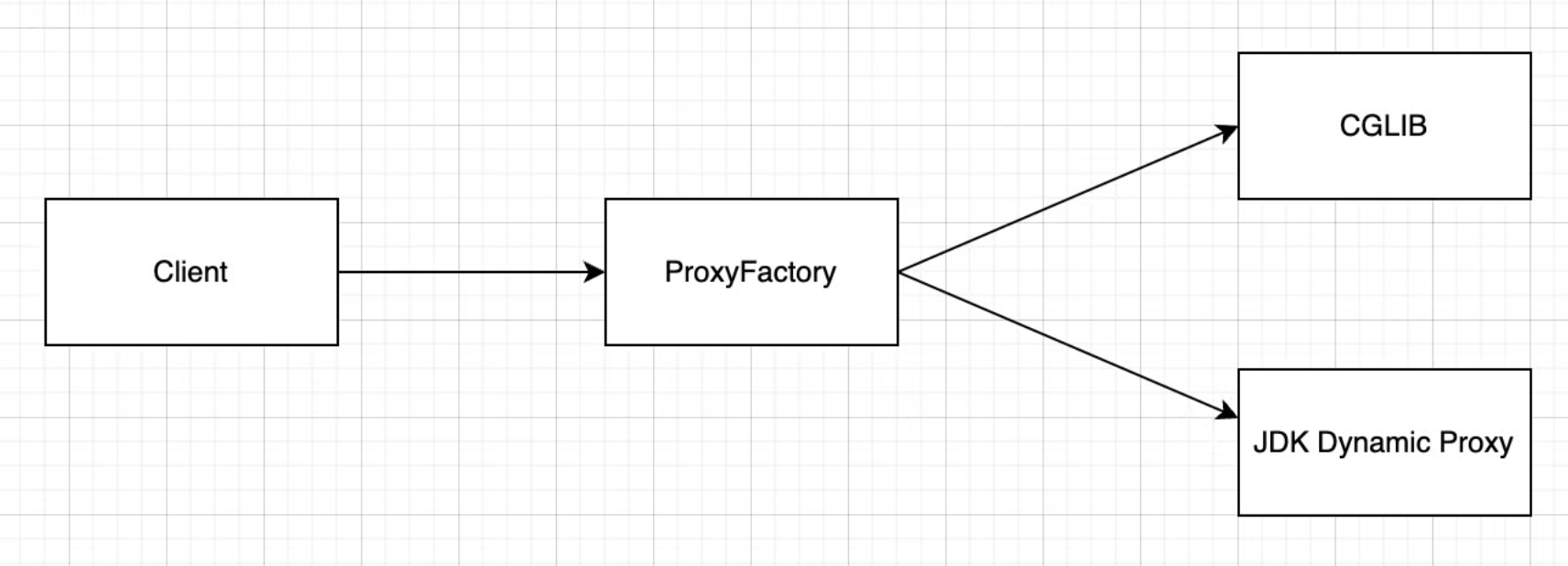 클라이언트 입장에서 ProxyFactory를 통해 프록시를 만들면 ProxyFactory가 알아서 jdk 동적 프록시 혹은 cglib 동적 프록시를 만들어준다.