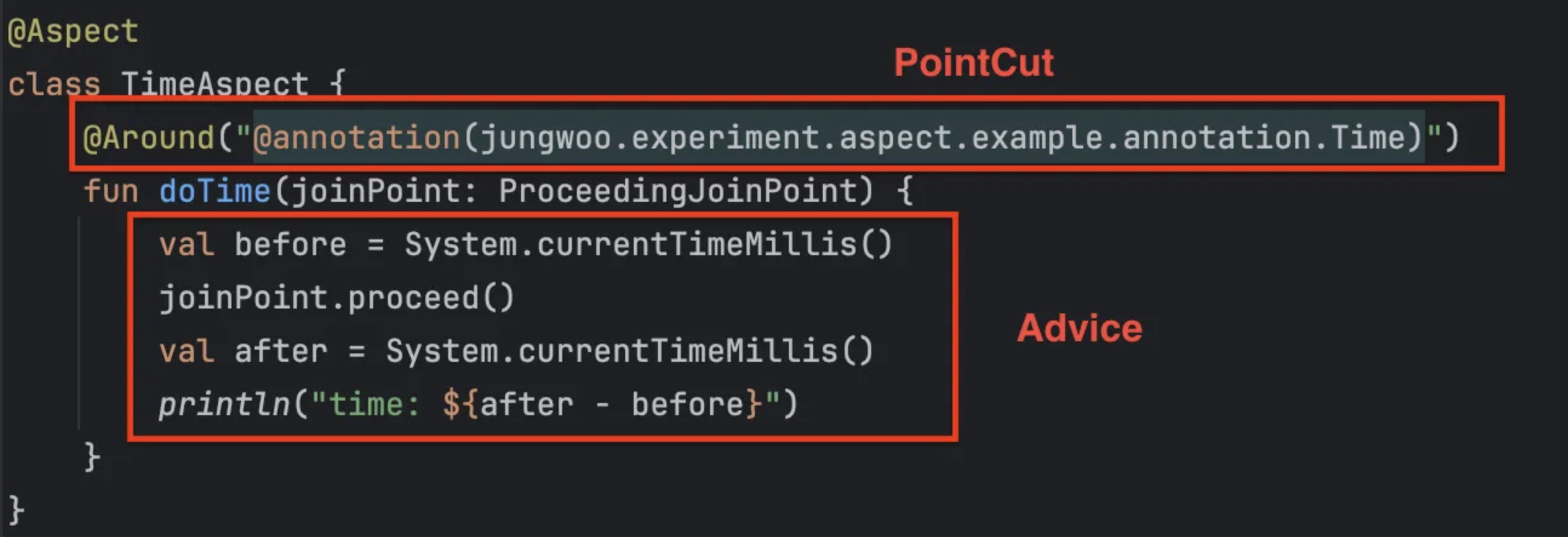 val pointcutAdvisor = DefaultPointcutAdvisor(Pointcut.TRUE, TimeAdvice())