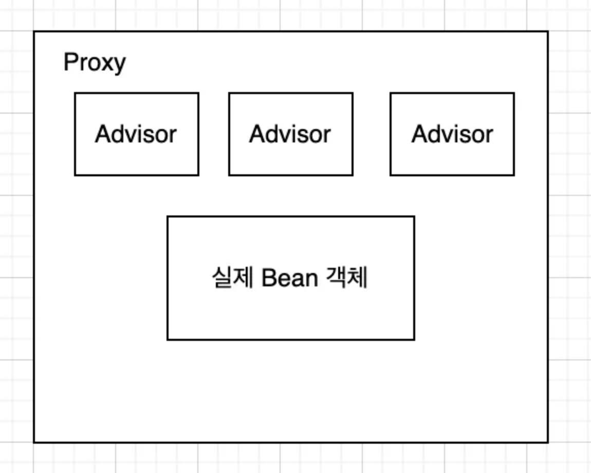 중요한건 여러 부가로직을 넣고 싶다고 해서 프록시를 여러개 만드는 것이 아니라 하나만 가지고 있고 advisor에 등록된 포인트 컷에 따라 실행될 advice를 필터링하고 advice를 실제로 실행한다는 것이다.