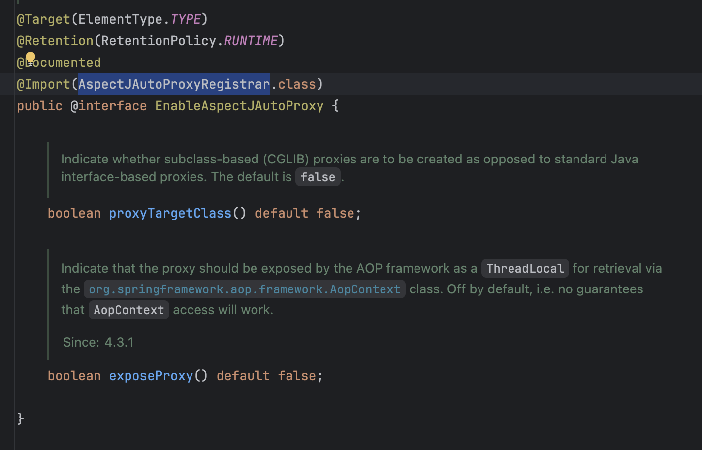 우선 스프링 공식 문서에서는 스프링 aop를 쓰고자 한다면 EnableAspectJAutoProxy를 켜라고 한다.
