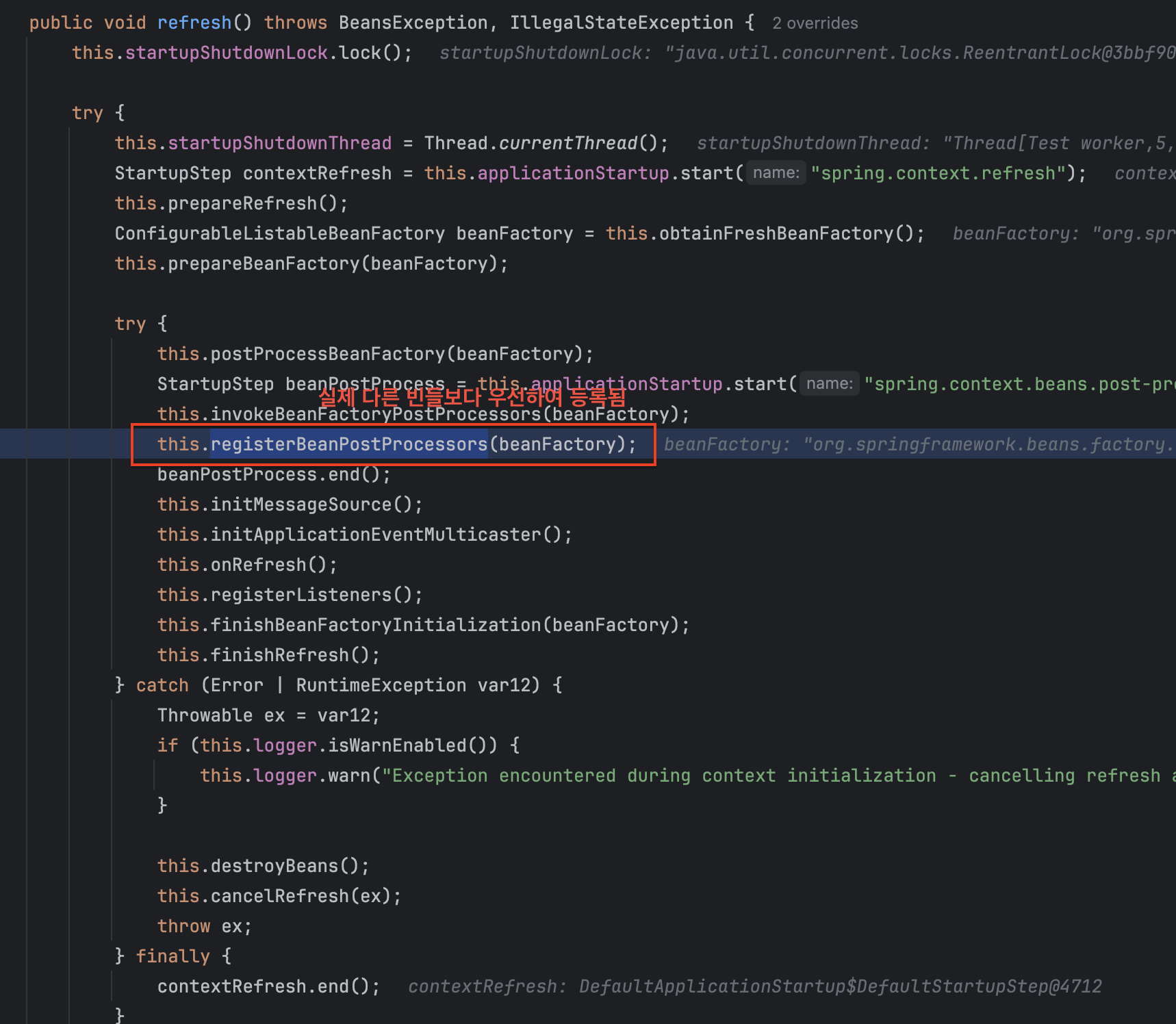 BeanPostProcessor들은 실제로 그냥 먼저 등록된다.