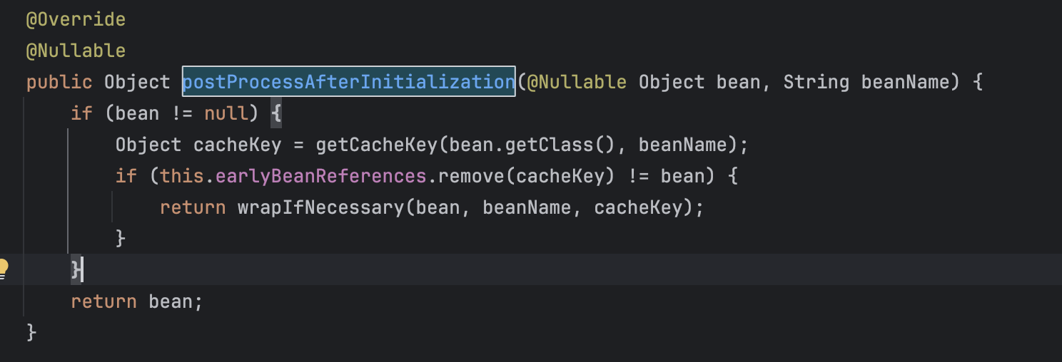 override fun postProcessAfterInitialization(bean: Any, beanName: String): Any? {