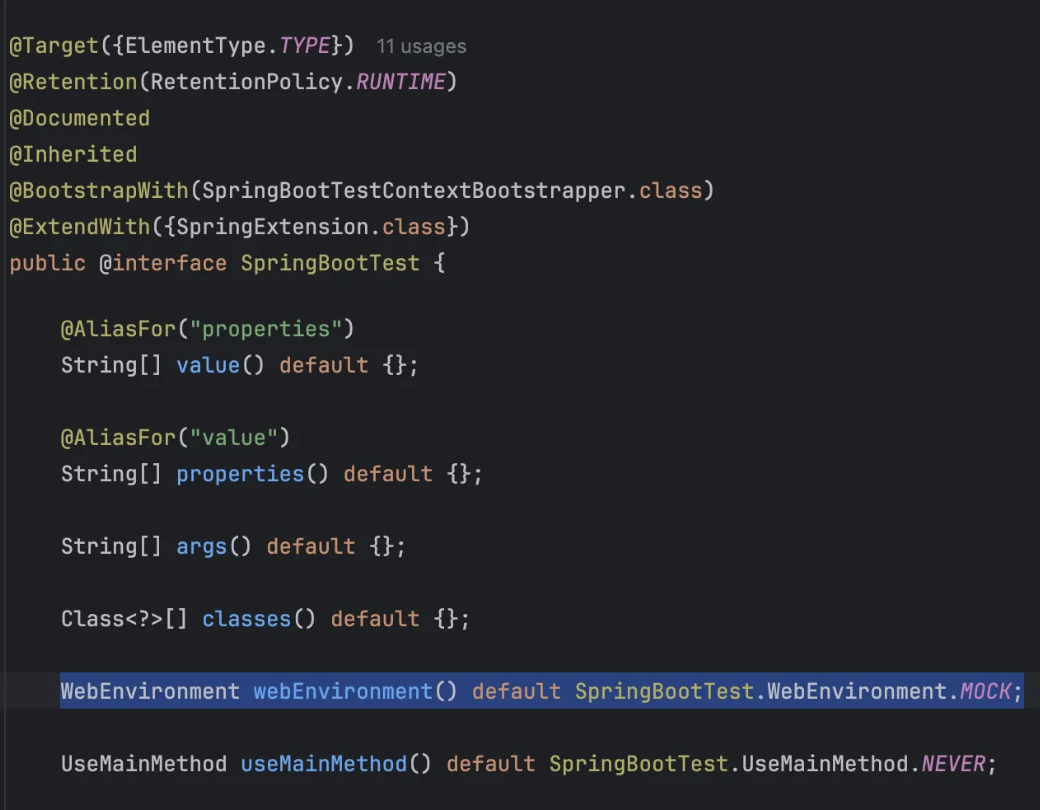 @SpringBootTest(webEnvironment = SpringBootTest.WebEnvironment.MOCK)