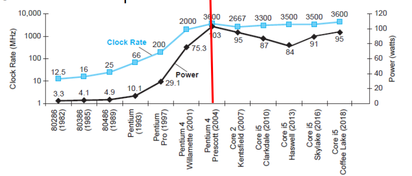 전력 한계 문제에 부딪힌 후 단일 프로세서에서 한 프로그램의 응답 시간을 계속 줄여 나가는 대신, 칩에 여러 개의 프로세서를 집적한 마이크로 프로세서를 생산하였는데, 이는 응답 시간보다는 처리량 개선에 더 효과가 있다.