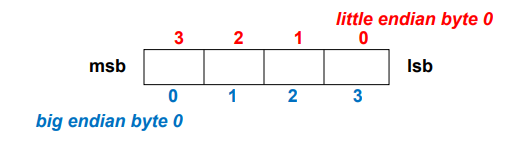 그렇다면 메모리 주소가 0부터 시작이라고 하면, big endian의 경우 msb부터 저장하고 Little endian의 경우 lsb부터 저장하므로,