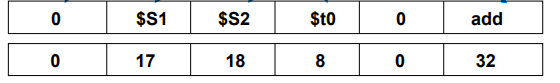 예를 들어서, add $t0, $s1, $s2의 명령어를 기계어로 표현한다면,
