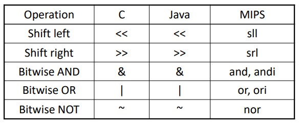 bit wise 논리 연산도 MIPS ISA에서 다음과 같이 표현한다.