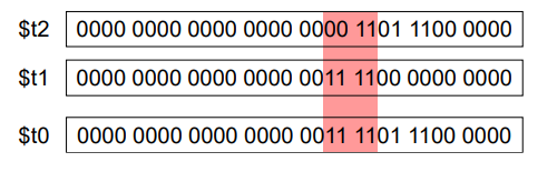 srl $t2, $s0, 8 #shift right logical $t2 = $s0 >> 8 bits