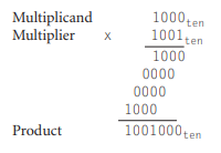 2진수 곱셈이 어떻게 이루어지는지 보기에 앞서 십진수의 1000 곱하기 1001을 하는 과정을 살펴보자.