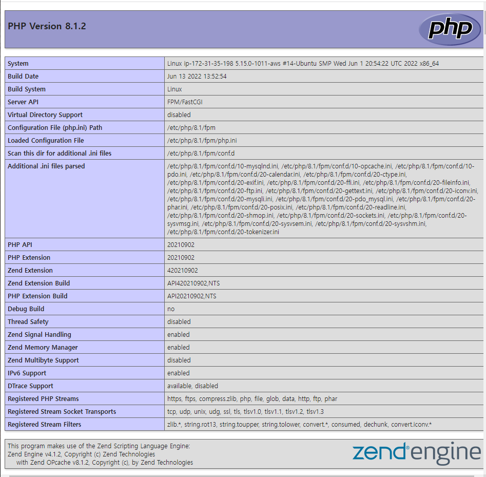 php와 nginx를 연동해서 phpinfo(); 화면이 나오게끔 해주자.