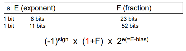 예를 들어 1.11 x 2^-100이었다고 하면, -100 + 127 = 27 = 00011011이 E에 오게 될 것이다.