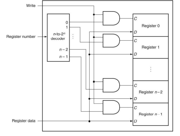 Write 할 때는 write 할 레지스터의 번호만 1로 출력하고 나머지는 0으로 출력하는 Decoder와 WriteContol 신호를 이용해서 어떤 레지스터에 값을 쓸 건지 레지스터에 write 하는 명령어가 맞는지 And게이트에 넣어 만약 둘 다 맞을 시 control 신호에 1을 넣어 해당 레지스터에만 값이 쓰이게끔 한다.