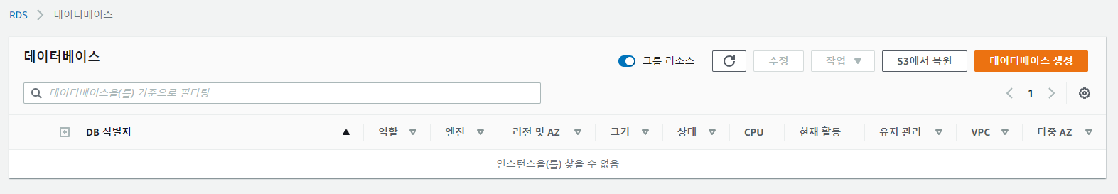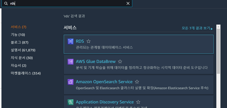 aws에서 rds를 검색하고 들어가준다.