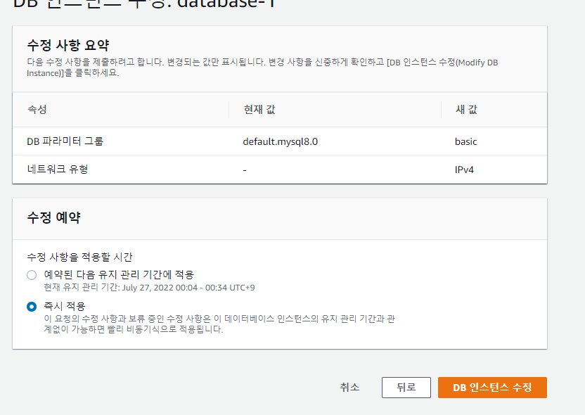 즉시 적용 체크 후 수정해주도록 하자.