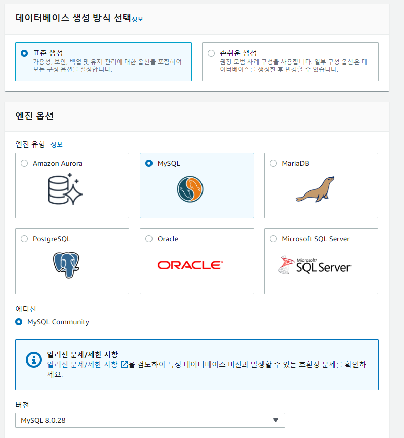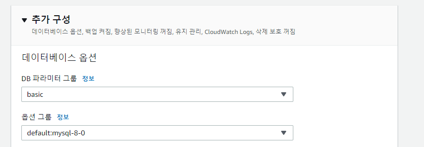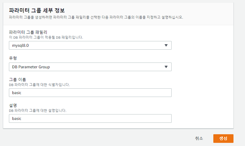 생성한 mysql 버전에 맞추어 파라미터를 하나 만들어주자.