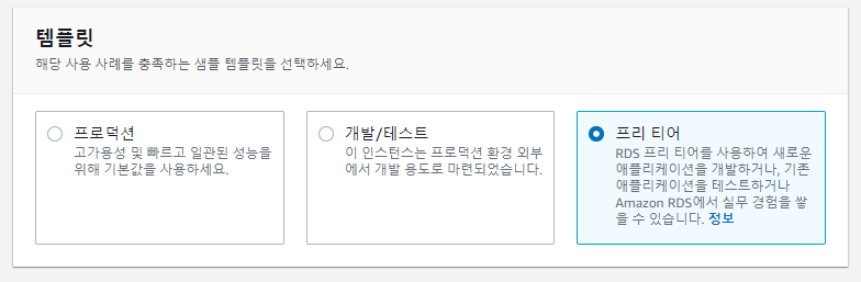 현재 프리티어를 사용 중이니 템플릿도 프리 티어로 만들어 준다.