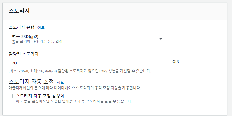 스토리지 설정에서 자동 조정은 출시를 생각 중이고 과금에도 문제가 없다면 자동 조정을 활성화하는 편이 낫다.