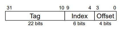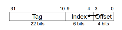 1 block이 4word를 가지므로 offset은 16만큼 표시할 수 있는 4bit를 가져야한다.