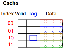 즉, memory의 00001 주소가 캐시로 올 때, 00(tag) 001(index)가 될 것이다.