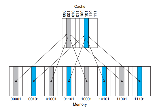 메모리의 각 워드에 캐시 내의 위치를 할당하는 가장 간단한 방법은 메모리 주소에 기반을 두고 할당하는 것이다.