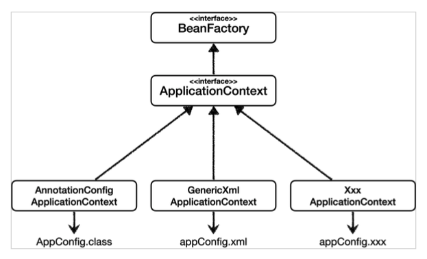 당연히 하위의 ApplicationContext는 BeanFactory의 모든 기능을 포함해 더 많은 기능을 갖고있고, 또 하위의 자세한 구현코드는 각 설정파일 별로 특화된 더 많은 기능들을 갖고 있다.