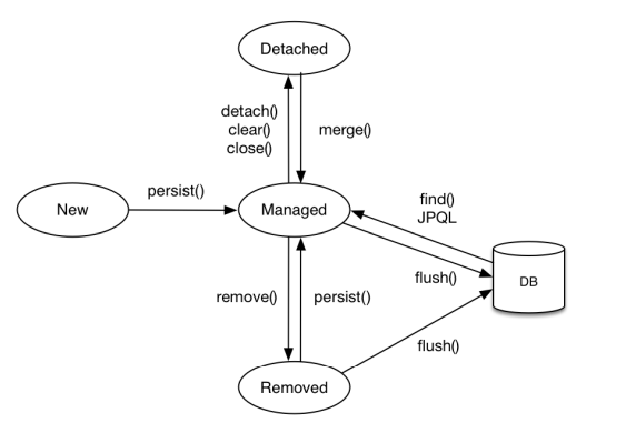 ex) em.persist(member), em.find() 혹은 jpql을 통해 데이터베이스에서 entity를 조회하여도 영속성 컨텍스트에 저장된다. - 준영속(detached) : 영속성 컨텍스트에 저장되었다가 분리된 상태