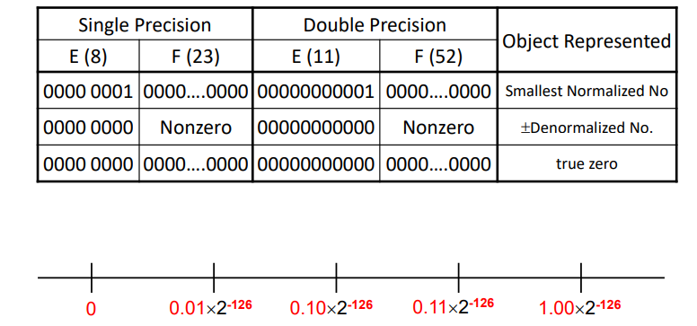 E field가 모두 0이면 정규화된 표현식처럼 1.~로 표현되는 것이 아니라 0.xxxxx * 2^yyy 라고 생각하면 된다.